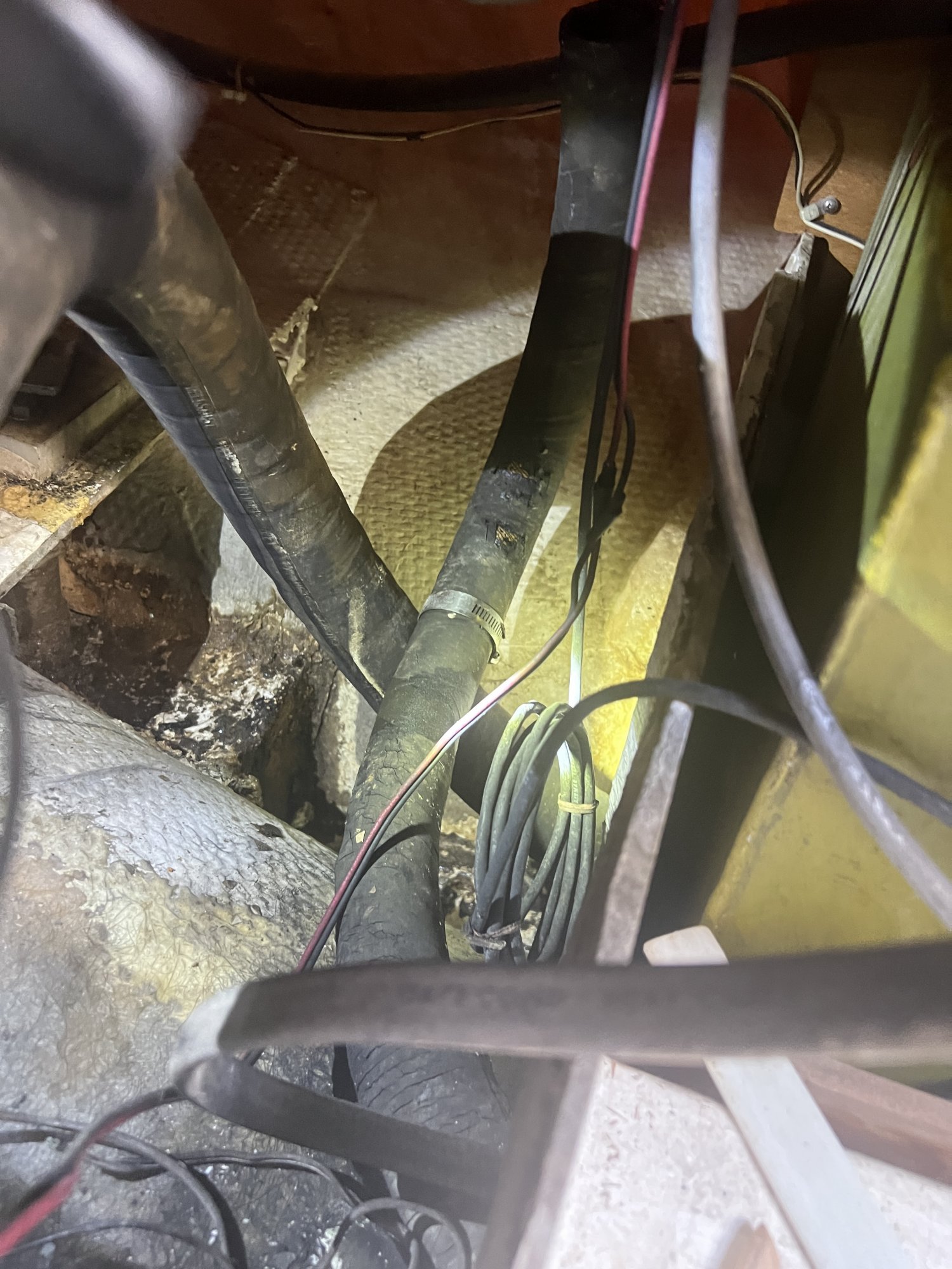 I just bought a 1980 Hunter 33. I noticed when flushing the head that the water was ending up in my bilge. I followed the line from the head looking for signs of a leak before reaching the through hull valve. What I found was that the line just stopped. So the water was just pouring into the bilge. The line turns upward just behind the gas tank and stops. (See attached pics) There doesn’t seem to be ANYTHING in that area for it to attach to. Also, I can’t seem to find the through hull outlet where I thought it SHOULD connect. Please help!