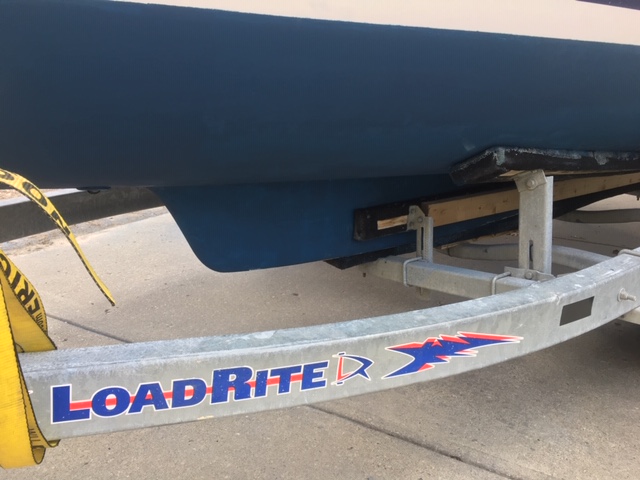 Again Dave has a good point, axles were designed to carry the frame and whatever load it bears. Looking at Sailavie 1's keel bunk I see both forward and rear crossmembers are bearing load along with the axles, meaning all things being equal, there would be about 1250lbs on each. We should also consider the hull bunks(not at right angle) and what they were intended to carry. Guessing 5000lb for the total load, we're down to 833lbs each supporting member(again assuming each carries an equal share). Grab a tape measure and measure the length from the center of each support to the frame attachment(convert inches to feet) and multiply this times .5X833lb, this should give the torque(ft/lbs) applied to the frame member at the point of attachment. Now you can make a wag, whether set up as it is, whats the probability you will distort the frame enough to change the camber of any of the 4 wheels..... Another thing to consider is the c.g. of our boat in relation to the c.g. of the trailer. I've noticed that it appears our boats sit forward of the trailer c.g. Bottom line, I would love to see how these boats sat on the Loadrite trailers as they left the dealer (especially the keel bunk construction). Thanks to everyone for the replies!!