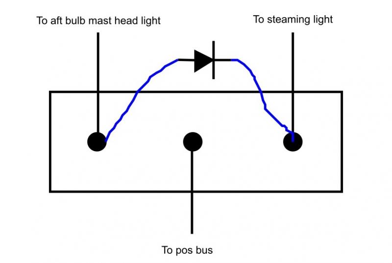 I recently purchased a 1996 Hunter 23.5. In going through it I discovered the masthead light didn't work. Troubleshooting led me to replace the connector at the base of the mast. Now my masthead light works but not the way I think it should. The switch either lights the front or the back of the masthead light, never both for 360 anchor light. I read someplace in the forum that there is supposed to be a diode someplace at the back of the switch panel on that switch. I pulled the switch panel but I don't see any kind of diode anywhere nor do I see where one would have been. I also don't see any mention of it in the wiring diagram in the manual. There really isn't much mention of the switch panel for that matter. The back of the switch panel has an "Ultra Panel Marine" sticker on it. Can anyone help me get this working correctly??