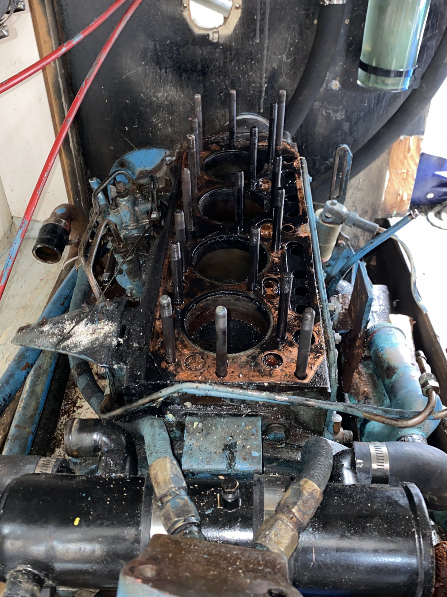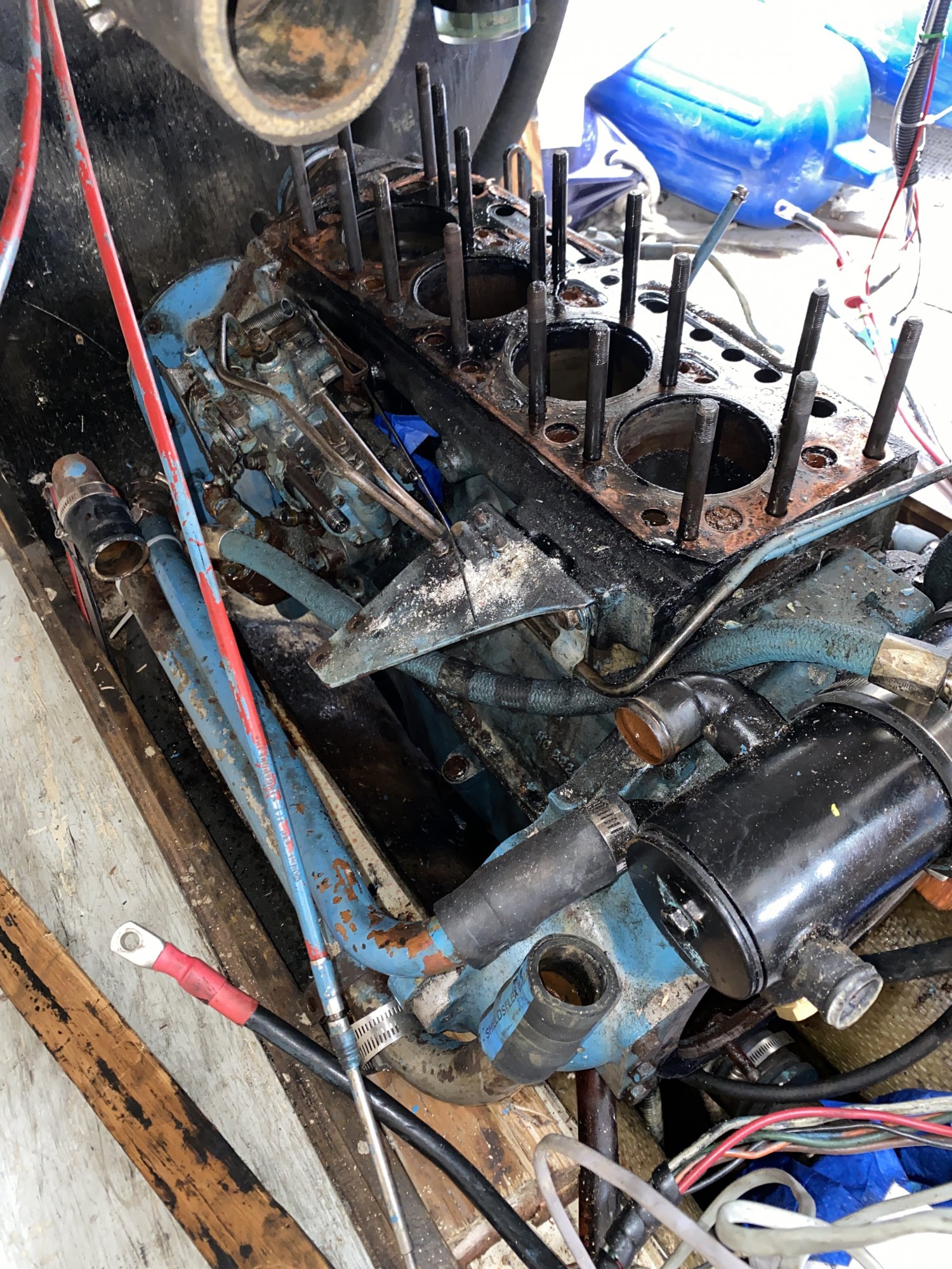 Monday we have the mechanic who promises to rebuild the engine showing up to get the block off the boat.