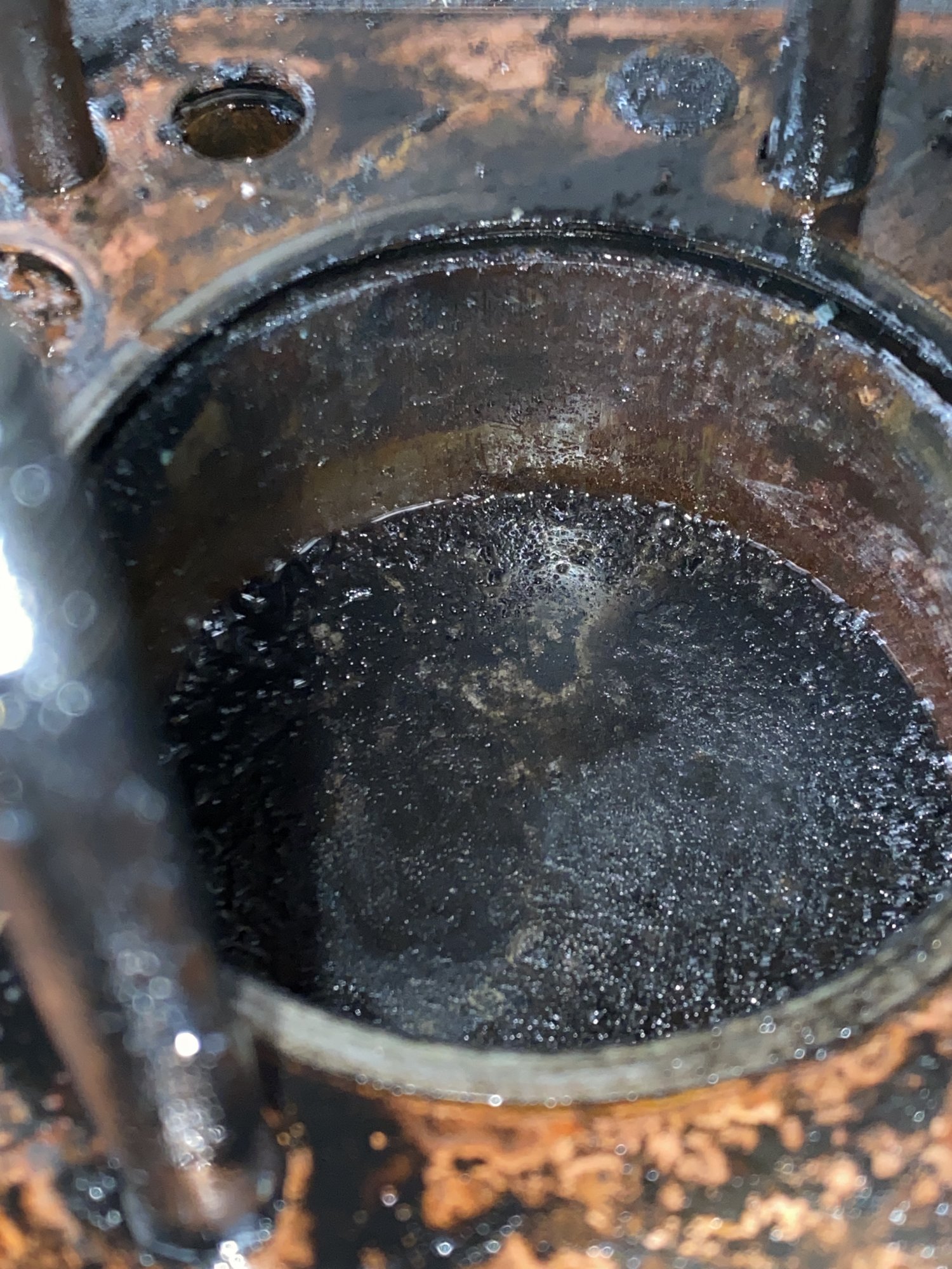 Looking into the block provided circumstantial evidence that there may have been water that entered cylinder 4 from the muffler.