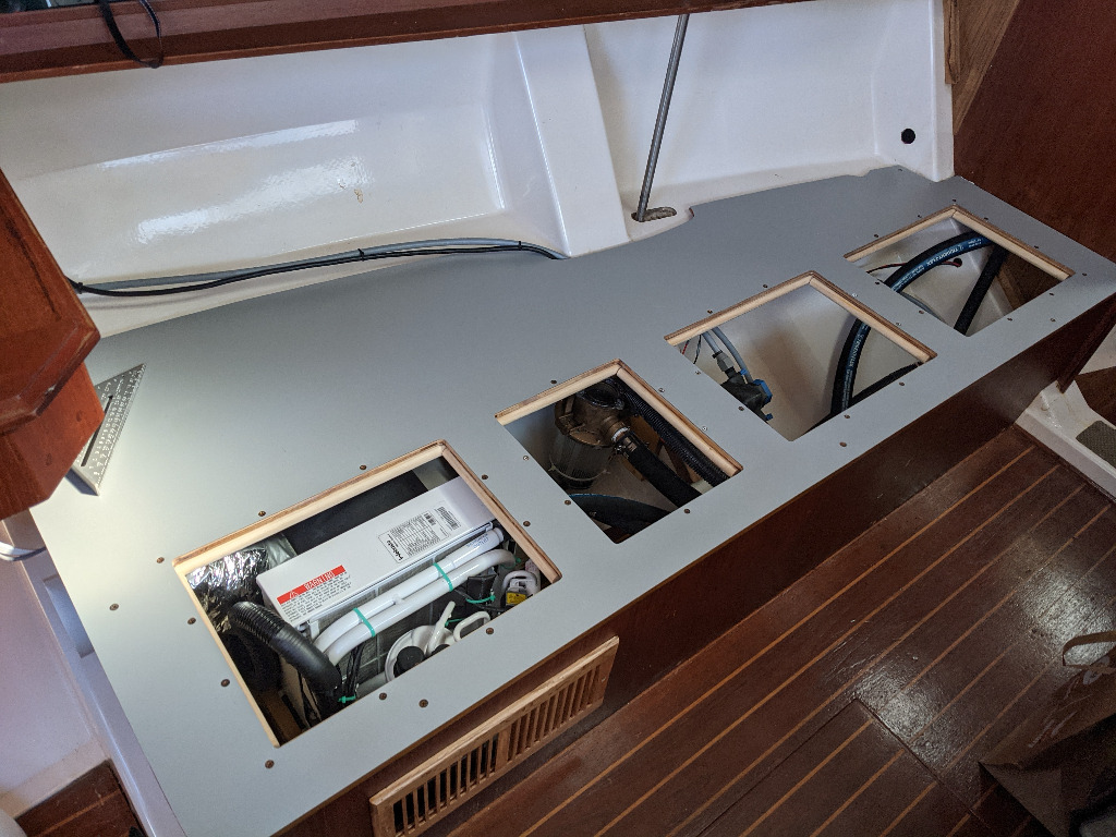 Last night I discovered water leaking across the stringer underneath the plywood floor into the bilge from the port water tank Here we go again! it's time to access it and get it repaired! Unfortunately this means taking it apart putting it back together at least two or three times.