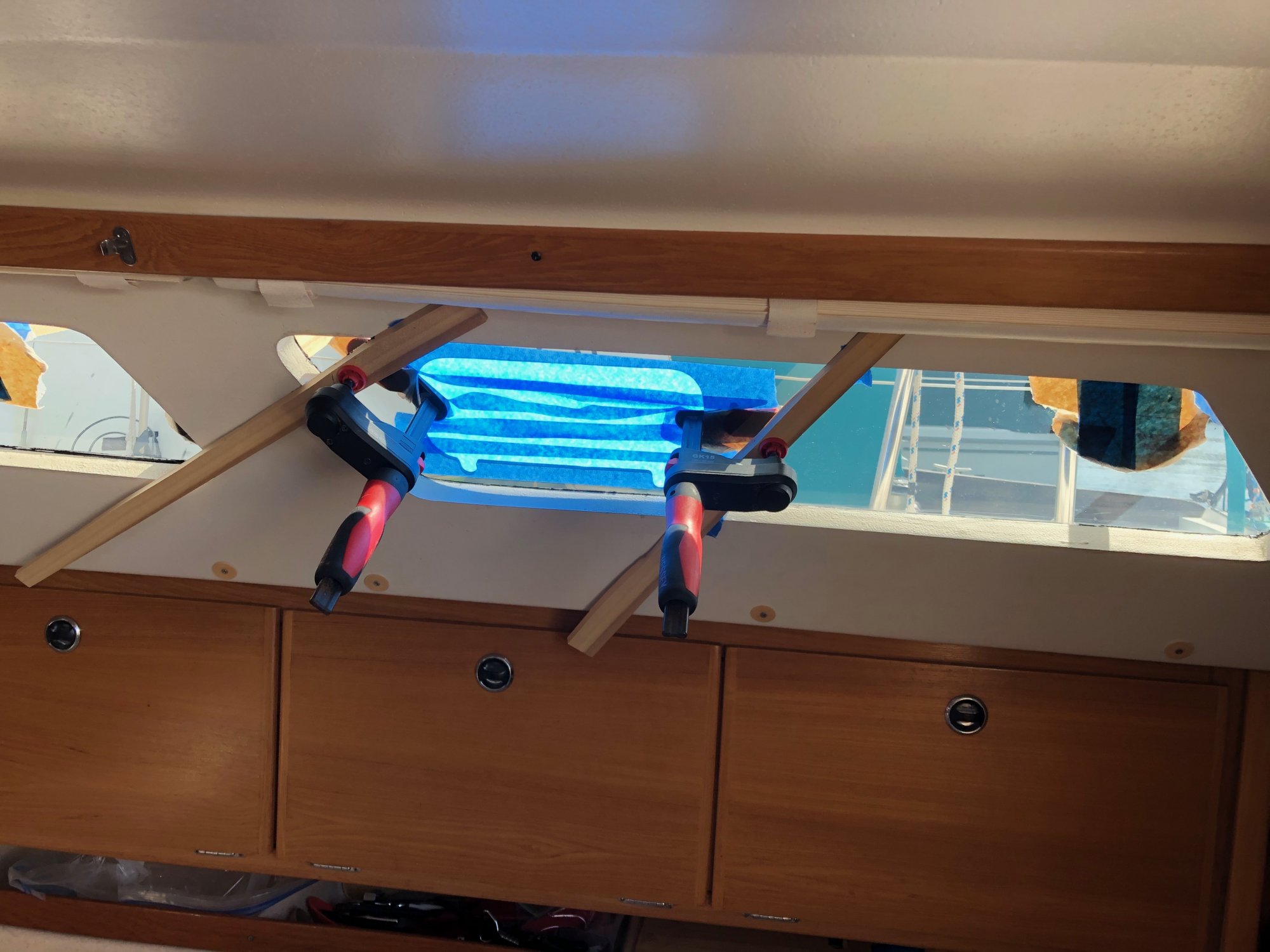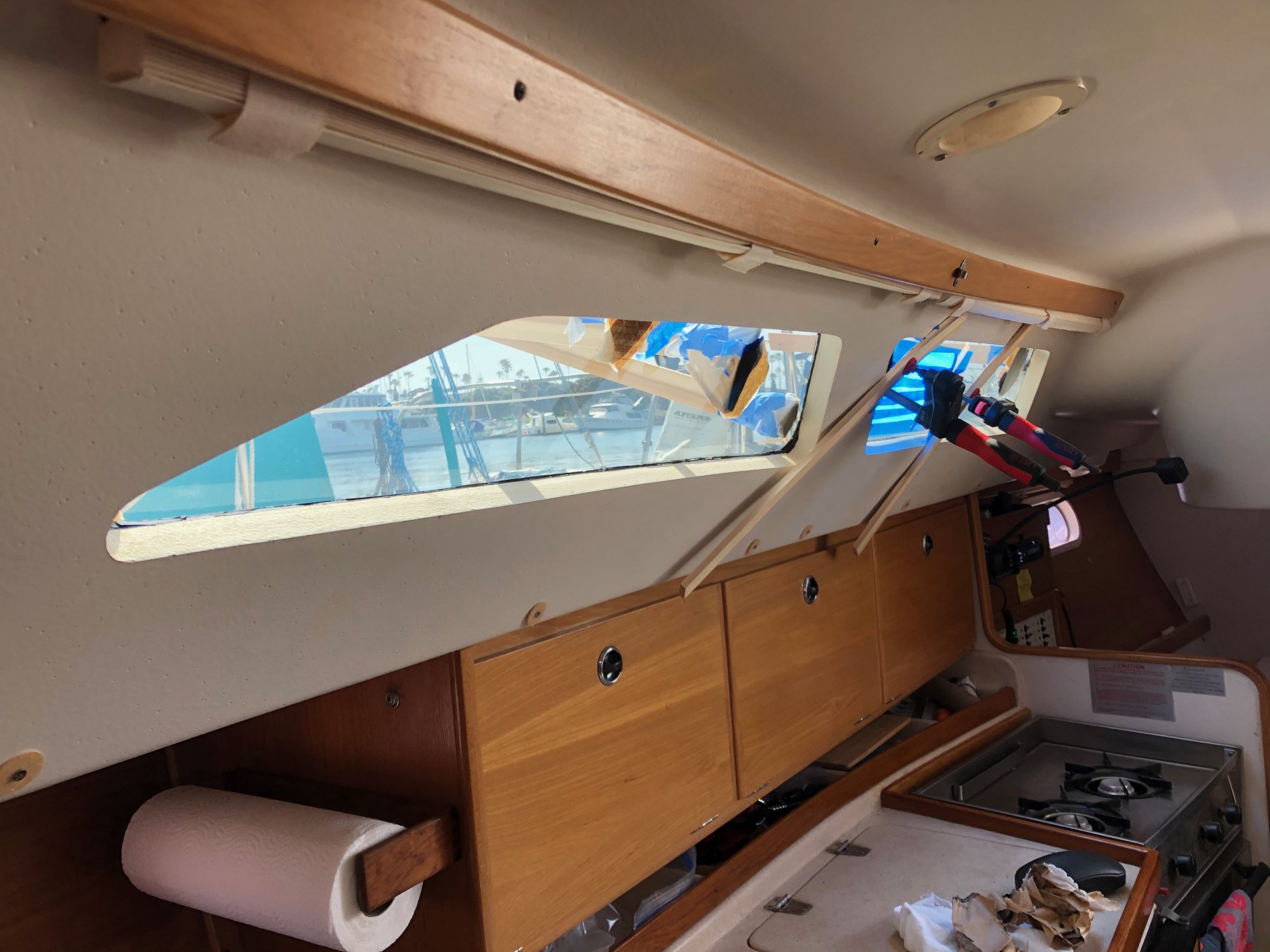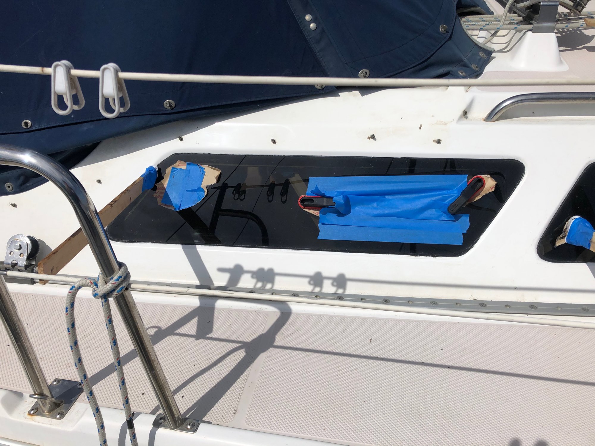 This past summer, I installed new fixed portlights in my 88 C30. In the originals, the lens was held in place with screws around the perimeter but I used 3M VHB tape and Dow 795. Here are some photos. The three vertical strips of white tape form a hinge to allow the lens to be properly aligned and then rotated up out of the way to strip the paper off the back and wipe down with alcohol before sticking to the tape.