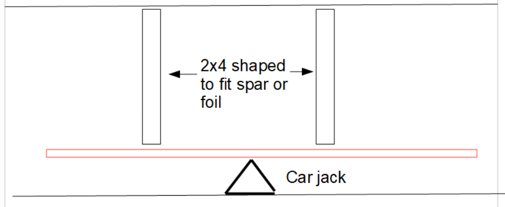 The props should have the ends shaped to fit the spar and should be braced so they don't slip.