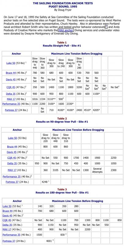 Evidence of a Fortress anchor's ability to handle a wind shift once properly buried can be found in the Sailing Foundation's anchor tests (summary attached) in which they conducted straight, 90 degree, and 180 degree pulls. Once the much lighter Fortress was buried at over 4,000+ lbs of load, it did not break free in the 90 degree and 180 degree pulls when subjected to additional 4,000+ lb. loads.