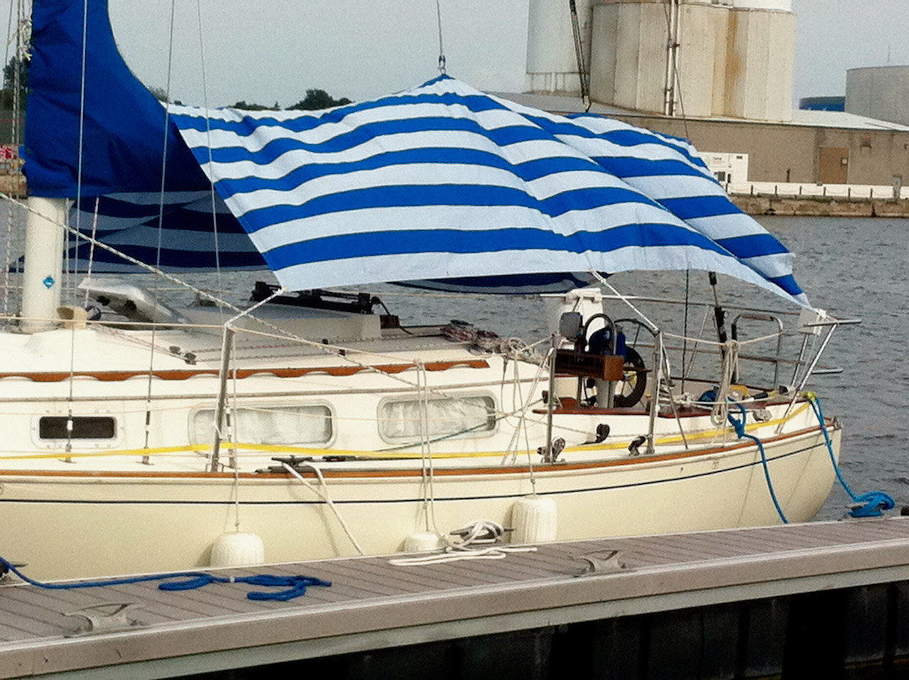 As nice as it is to have a cover at the dock, that blue and white one looks like more of a pain in the ass to crawl in and out of, than the shade is worth, especially if you aren't 22.