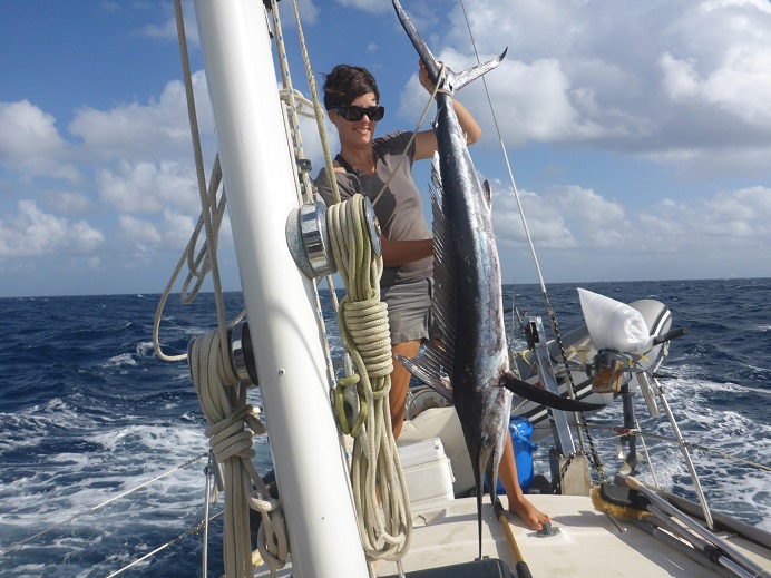 What was your boat speed when you hooked it and did you "heave to" when it was on.Coming south just north of St. Vincent on a 6" blue and white plastic squid. Of all the lures we've tried that seems to be the most productive and versatile.