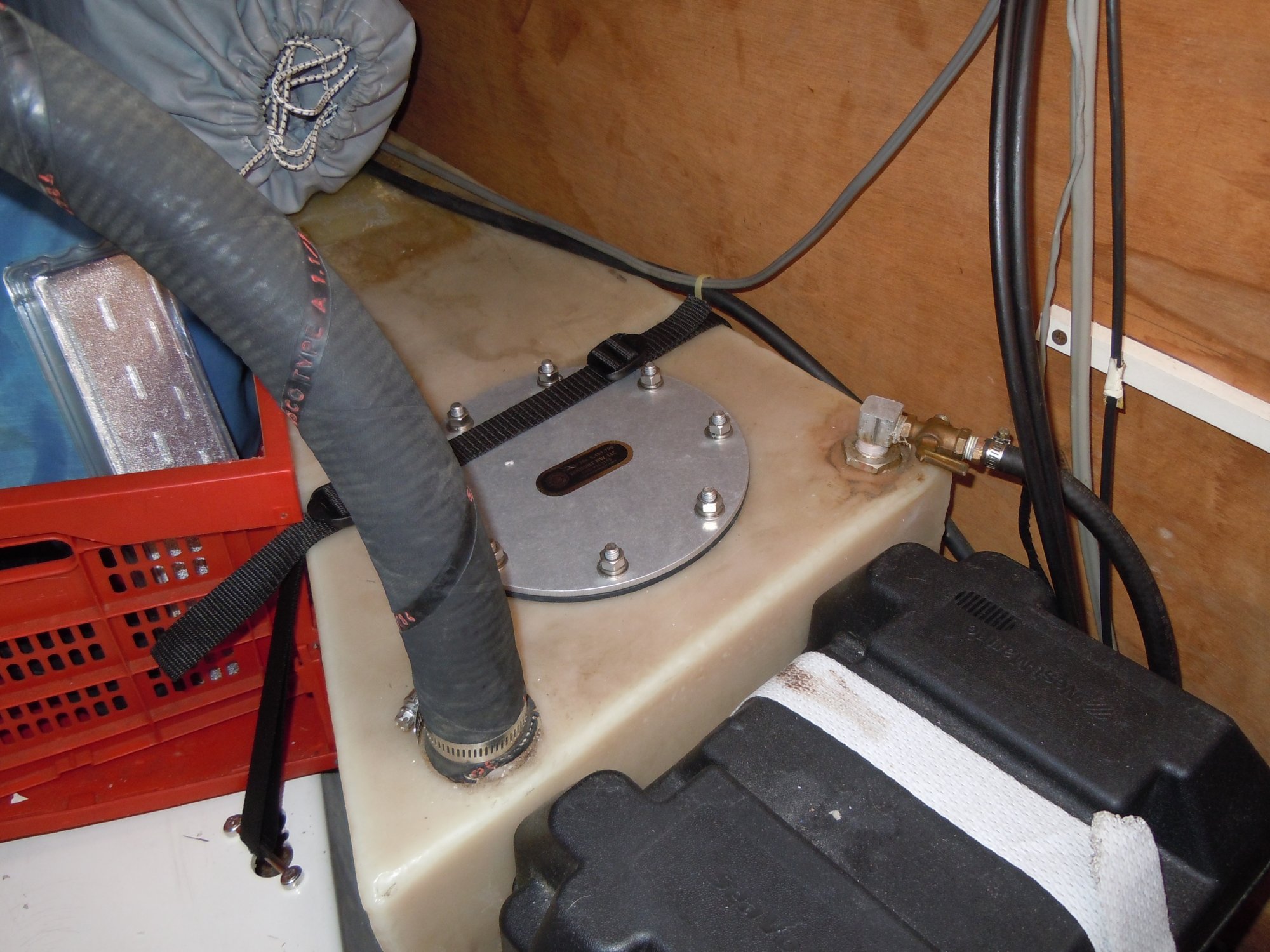 ...The tank itself is fiberglass and well glassed into place, extending well under structures that I am not going to remove. I would sooner scuttle than get into that can of worms...