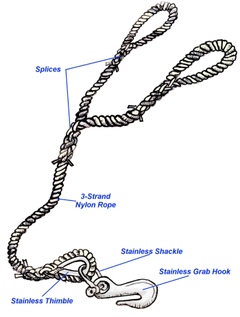 Bob we are in agreement about the anchor hook (just happened to be the first image that showed the parts of a bridal). I tend on the conservative side and use a Crosby anchor shackle. More time involved in set up and take down, but as I have aged the time spent to be sure is an investment. I sleep more peacefully.
