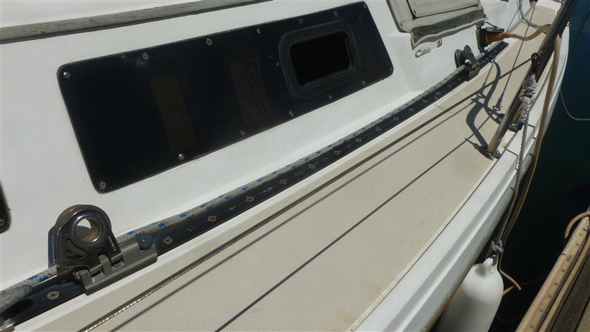 Please note this is my C34, not a C30. Some of our boats had both inboard and outside tracks on the gunwale. Mine doesn't have the outside tracks. IIRC, the inboard track on C30s is up on the coachroof, right?