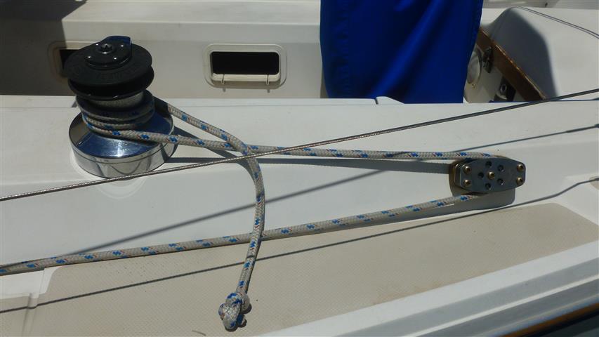 I was just trying to be funny. Here is my setup, although the sheet is currently tied off to cleat 1 foot behind winch. When it is going to winch, it does not rub coaming.