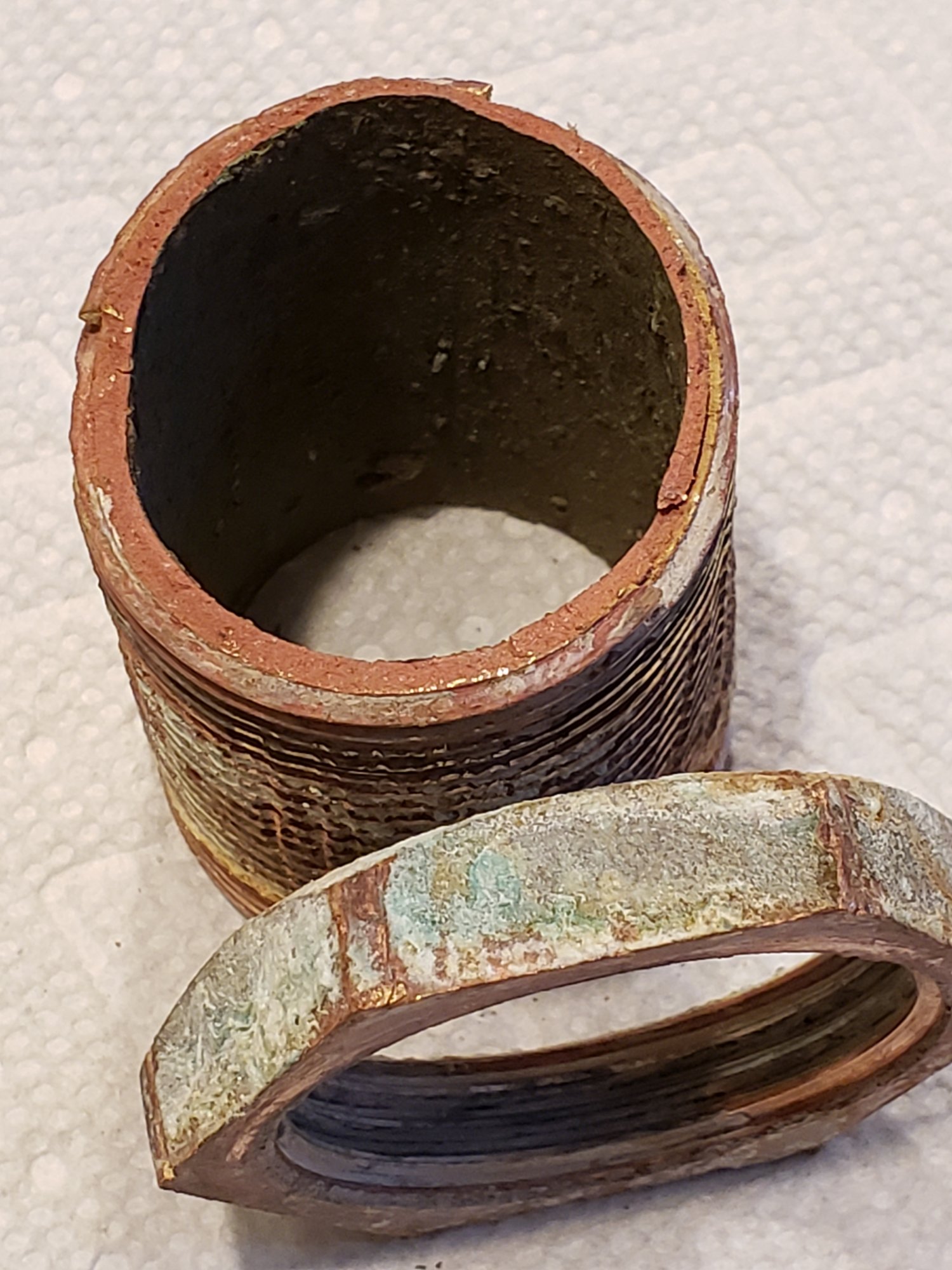 Still on the hard- one day before scheduled launch. Saw "green crap" on the galley sink drain. Thought I'd fix it before launch. Put an 18" wrench on the street elbow threaded on to the thru hull just below the valve. The thru hull cracked right off at the hull. This thru hull had the dreaded "pink" appearance at the break. This thru hull is not bonded.