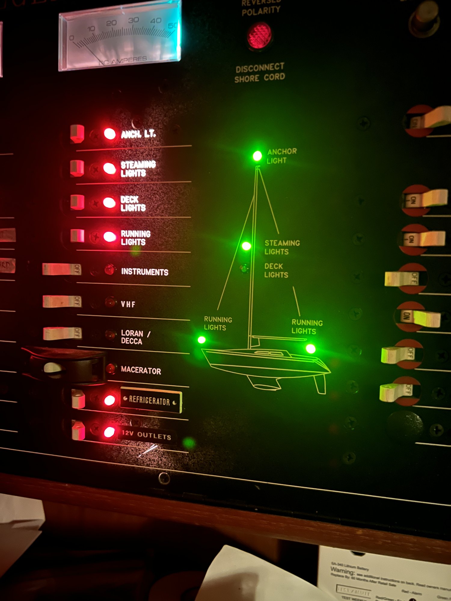 On my 1993 Hunter legend 35.5, there doesn’t seem to be a deck light fixture. The fixture pictured is the running light, and though there is a breaker on the circuit board for a deck light (which does light up when switched on, but the corresponding indicator light on the boat diagram on the panel doesn’t light up like the other indicated lights do), there is apparently no deck light on the mast that I can see. Does a deck light somehow normally attach on the bottom of the pictured fixture?