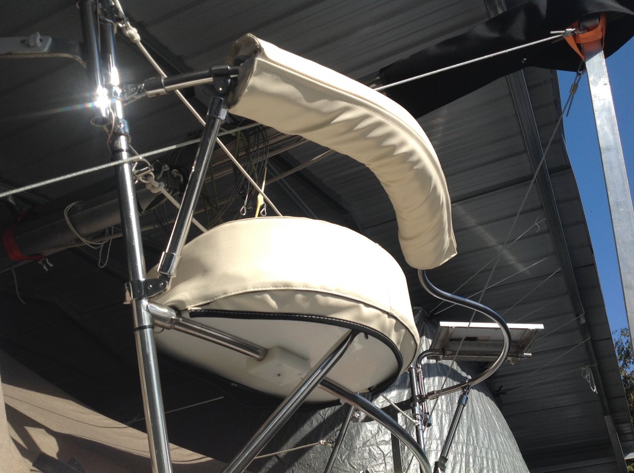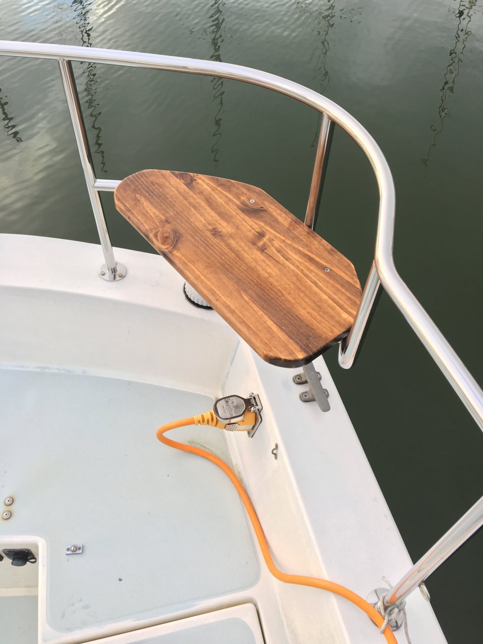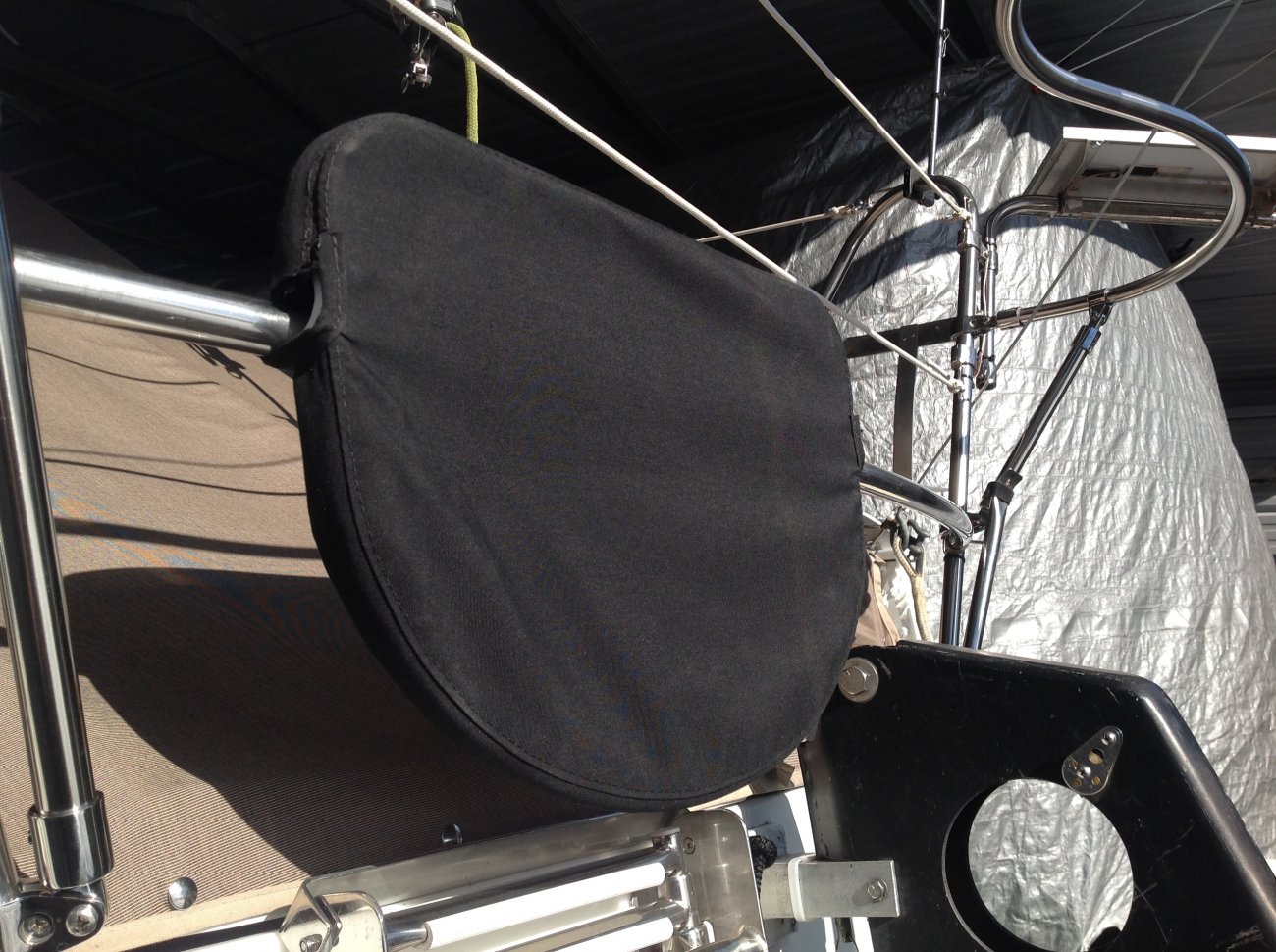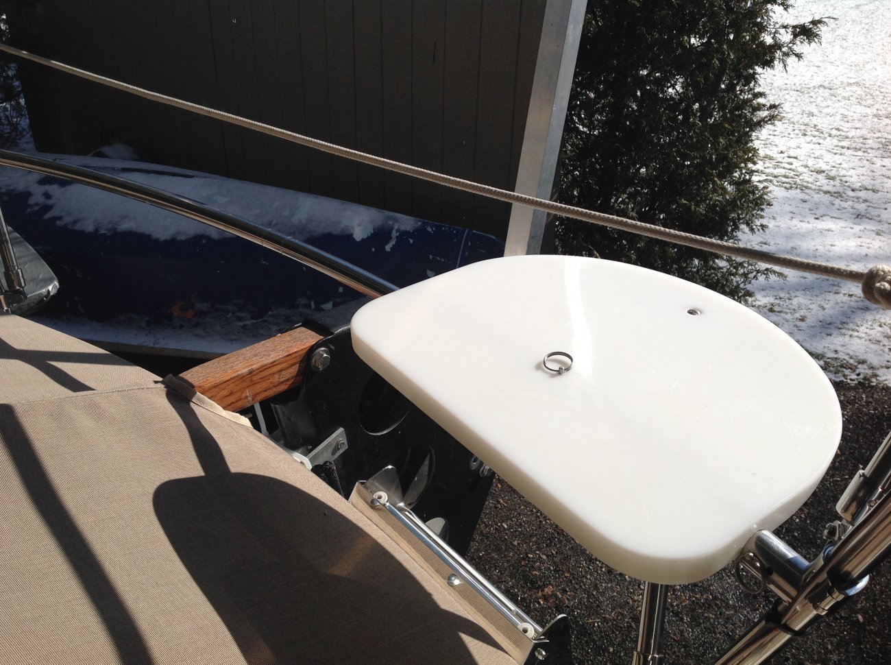 The seat, 1" HDPE Starboard (with 4" cushion to be made)...will slide from port to starboard as she chooses.