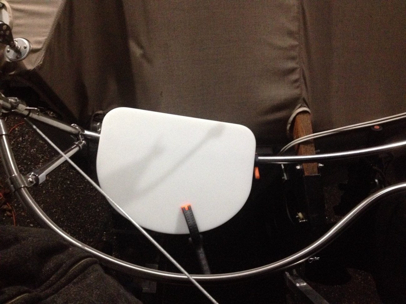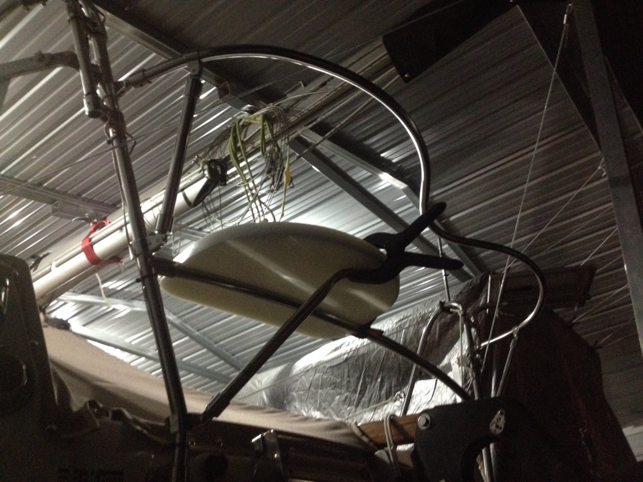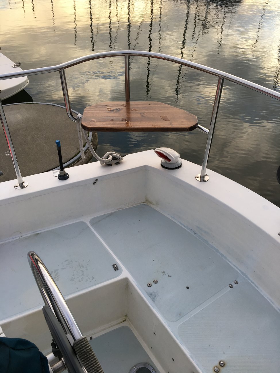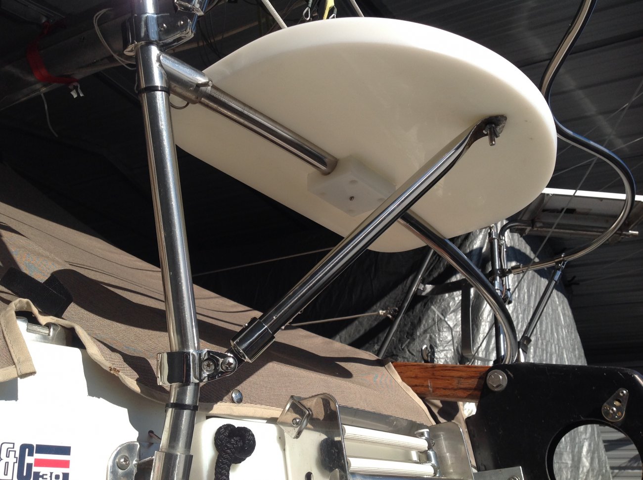 The seat, 1" HDPE Starboard (with 4" cushion to be made)...will slide from port to starboard as she chooses.