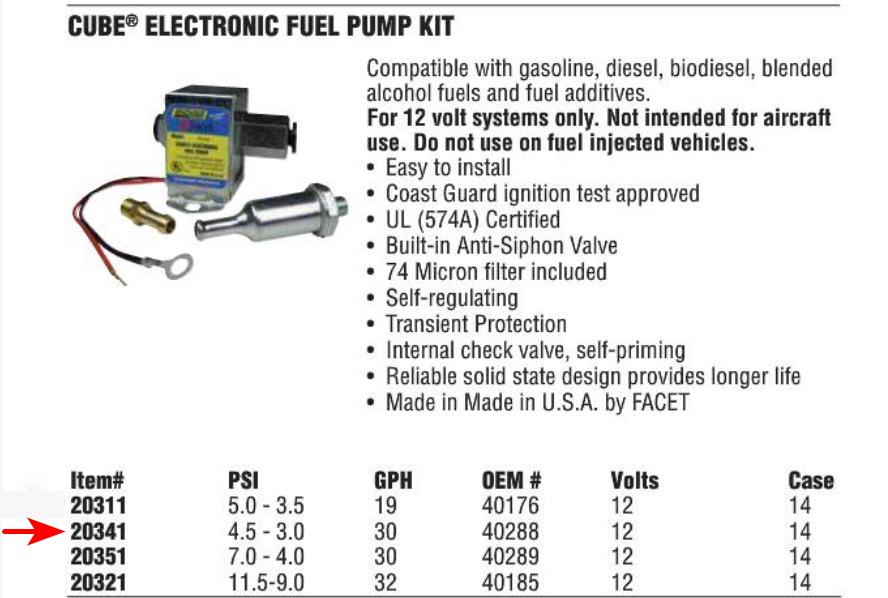 The pump that Ralph came up with specifies "Not for use with fuel injected engines".