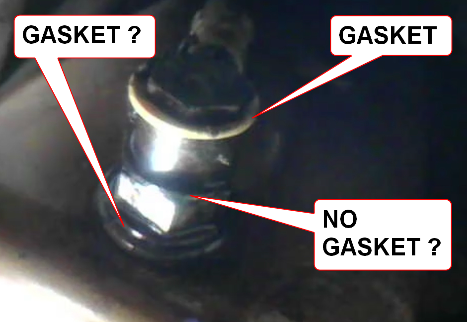 ! Your photo shows only one gasket on the bottom joint and maybe no gasket on the upper joint. Remember, the photo is upside down. The one gasket showing is definitely not the $22.30 trophy gasket (#23) but still looks like a healthy substitute.