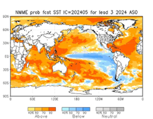 Using a combined modeling tool (NMME), the water temps in the Pacific ENSO currents are showing an upwelling of cold Antarctic waters along the coast of Chile and extending out into the equatorial waters of the South Pacific during the periods JunJulAug and AugSepOct.