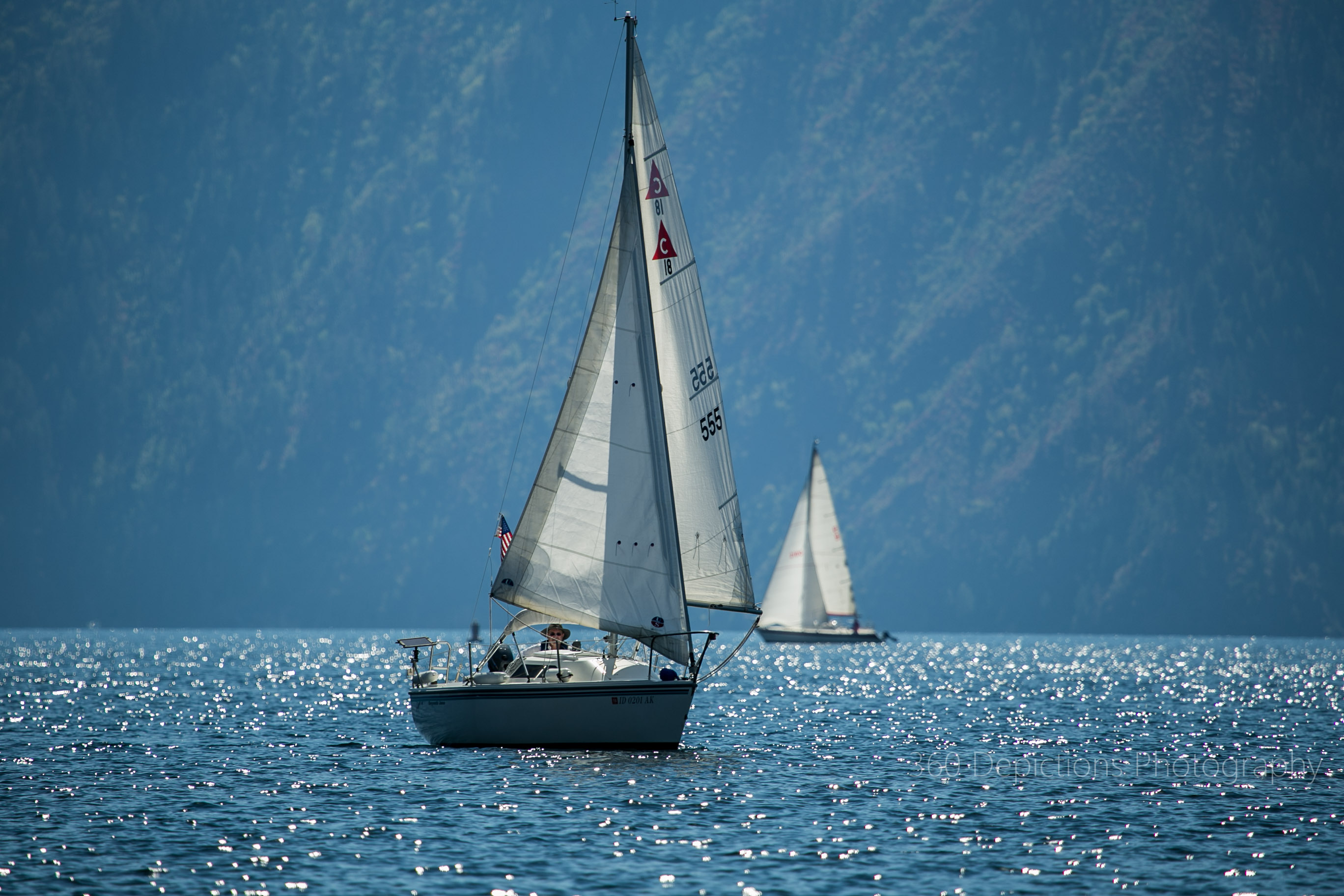 Racing single-handed at Lake Pend Oreille, Bayview Idaho, Catalina Capri 18... A friend shared this picture of me.