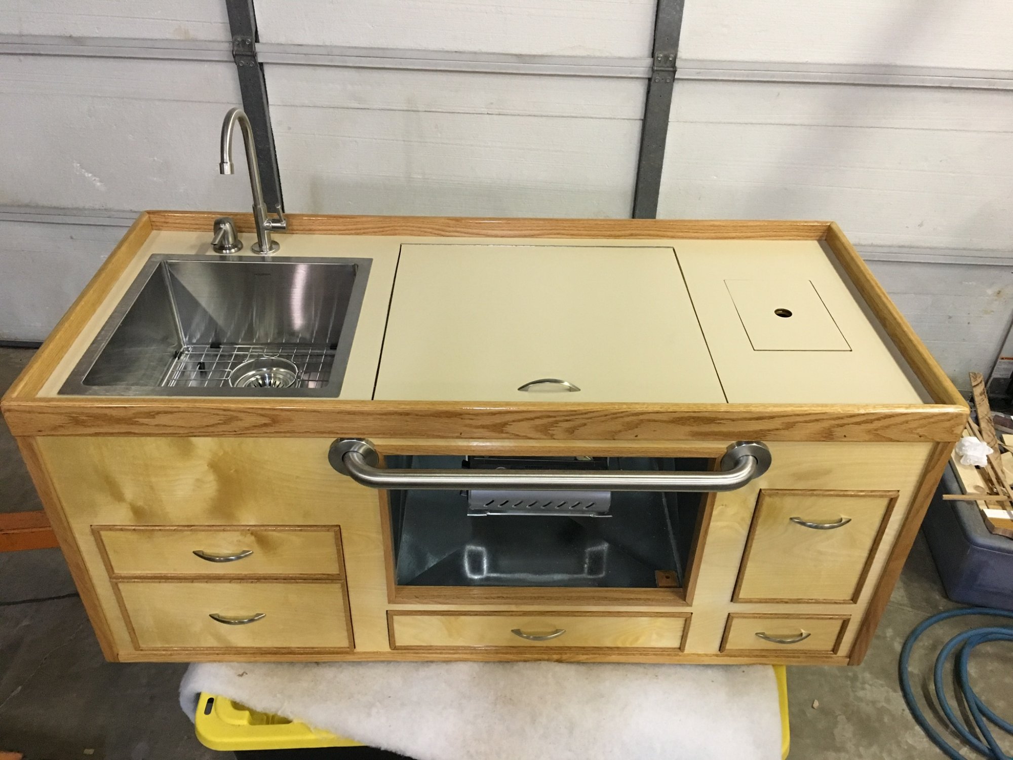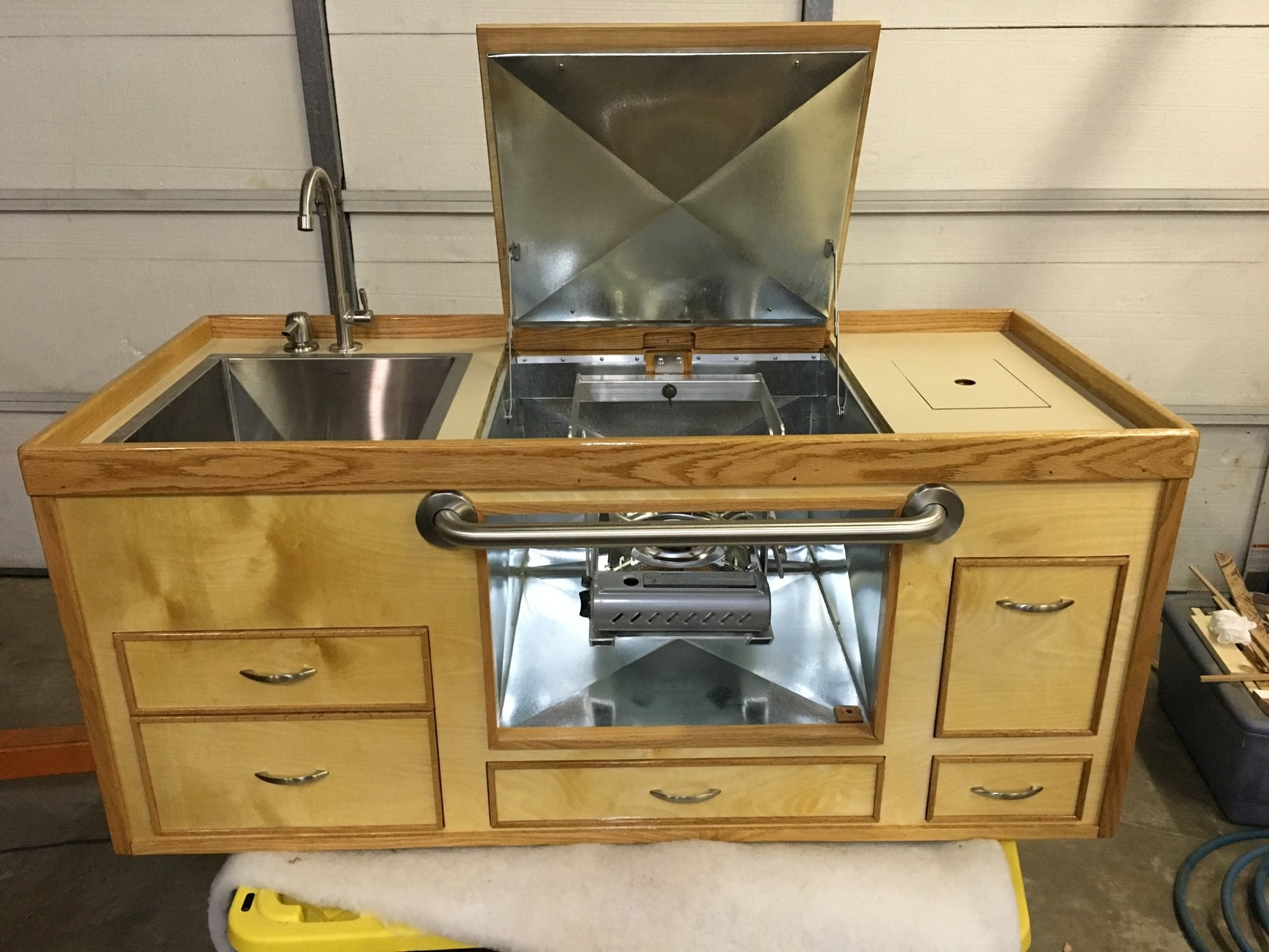 The galley on mine did not come with the optional flush mount Origo. So I just finished building a slightly improved galley for mine. Hoping to do some extended camping in mine, so trying to make it a little nicer inside.