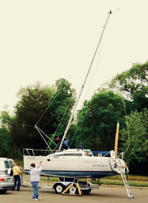 The wheel helm steers the outboard and the twin rudders simultaneously. Ordering the outboard quick disconnect kit is a must in my opinion - which lets you disconnect the outboard when sailing. It holds the outboard centered, so if something sudden happened, you could drop the tilt and steer with the rudders. But, disconnecting my 60hp tilted outboard from the helm is a totally different experience. When connected, the tilted outboard is flopping back and forth - giving a heavy feel to the helm that is totally unrelated to the rudder feel. When disconnected, the helm is very light and holds course well when released. Which brings us to another point. If you are a tiller sailor, and like rudder feedback, you may not care for the wheel helm.