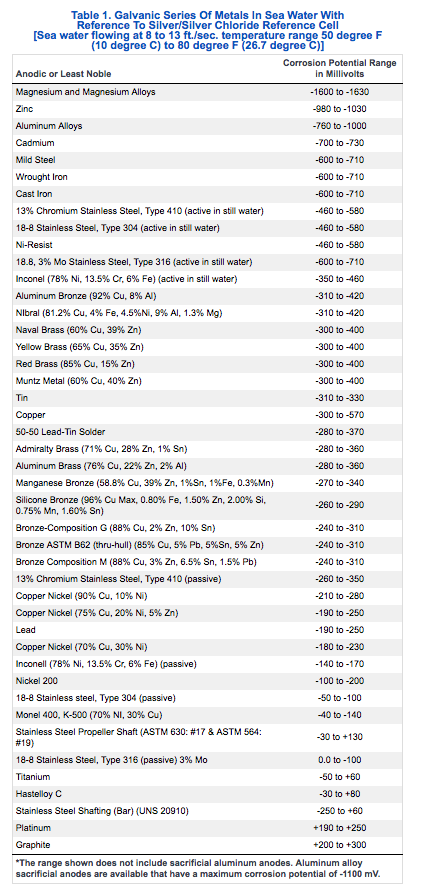 Please note Manganese Bronze potential range is -0.270 to -0.340 Volts... My Propeller material.