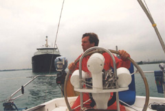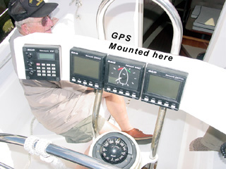 Has anybody mounted a GPS chartplotter on their pedestal guard? I have one down below at the nav station, but plan to add a second unit near the helm. I'd appreciate seeing pictures or plans of your installations. I already have a 3 pod affair with depth, speed and wind direction/speed. That means the Garmin chartplotter will have to go on the stainless steel pedestal guard.Ideas welcome!(picture of our helm attached-ignore the freighter running us over)