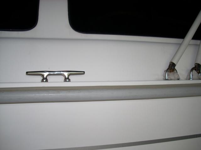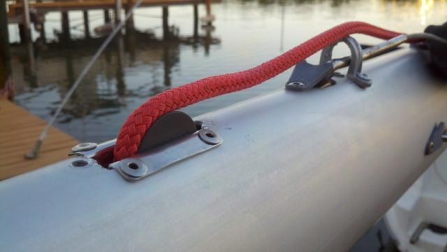 Here's the original pic of my hi-tec foam Tb fix. I also placed a guide at the side stay T on the mast made of 1/2" pvc 2 hole electrical pipe strap. A single pop rivet on the rearward end of the strap keeps it aligned and still allows easy removal if necessary. The fore stay got a strap too but with 2 rivets. No need to ever worry about a twisted fitting/turnbuckle.....but still watch everything.