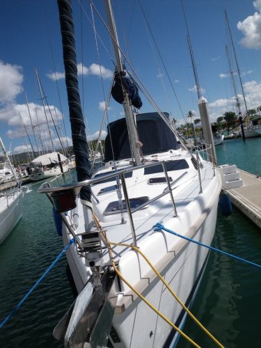 If you have an actual pic you can post of this probably 'modified' rig, it would be helpful for any further discussions. I doubt very much that Hunter built a cutter rig on the 450 and probably this was an 'add-on' by a previous owner; a 'true' cutter rig has the mast somewhat near 'amidships' or 40-50% of deck length back from the bow (or bowsprit) to be 'really' effective, otherwise the 'staysail' usually doesnt have enough sail area to be 'truly' effective even in 'blammo' conditions.