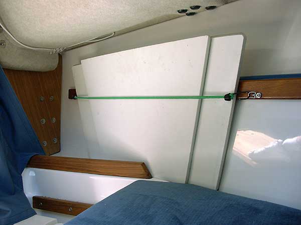 Oh, to answer your question, all 3 sets (yes, 3 sets, one solid, one with tinted plexiglass and one with a screen) get stowed in the aftmost port corner under the quarterberth cushion. The little boy doesn't take up that space as of yet!!theses are the most annoying things i have ever encountered...what do you do with them when in port...for that mater sailing too....... and spending time in and out of the cabin and cockpit...