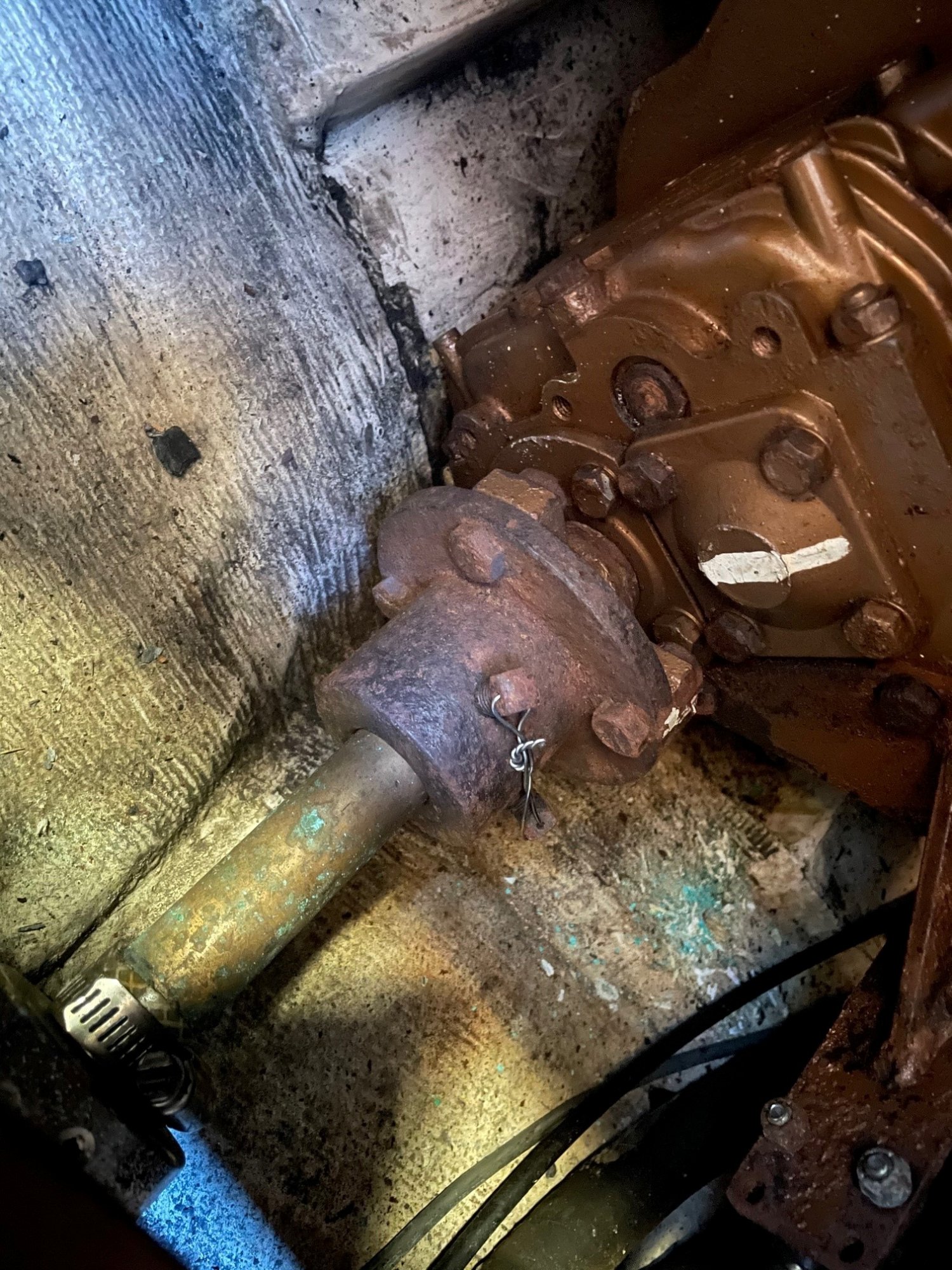 That is what my coupler looked like and after much blood, sweat and tears, I finally had to cut it off with a side-grinder. Once the coupling was off, i was able to remove the shaft without removal of the rudder. I took it to a shaft shop to have a new coupler faced to the shaft and found that the bronze shaft had a bend and had lost zinc so now I have a new SS shaft with split coupling. :kick::banghead:
