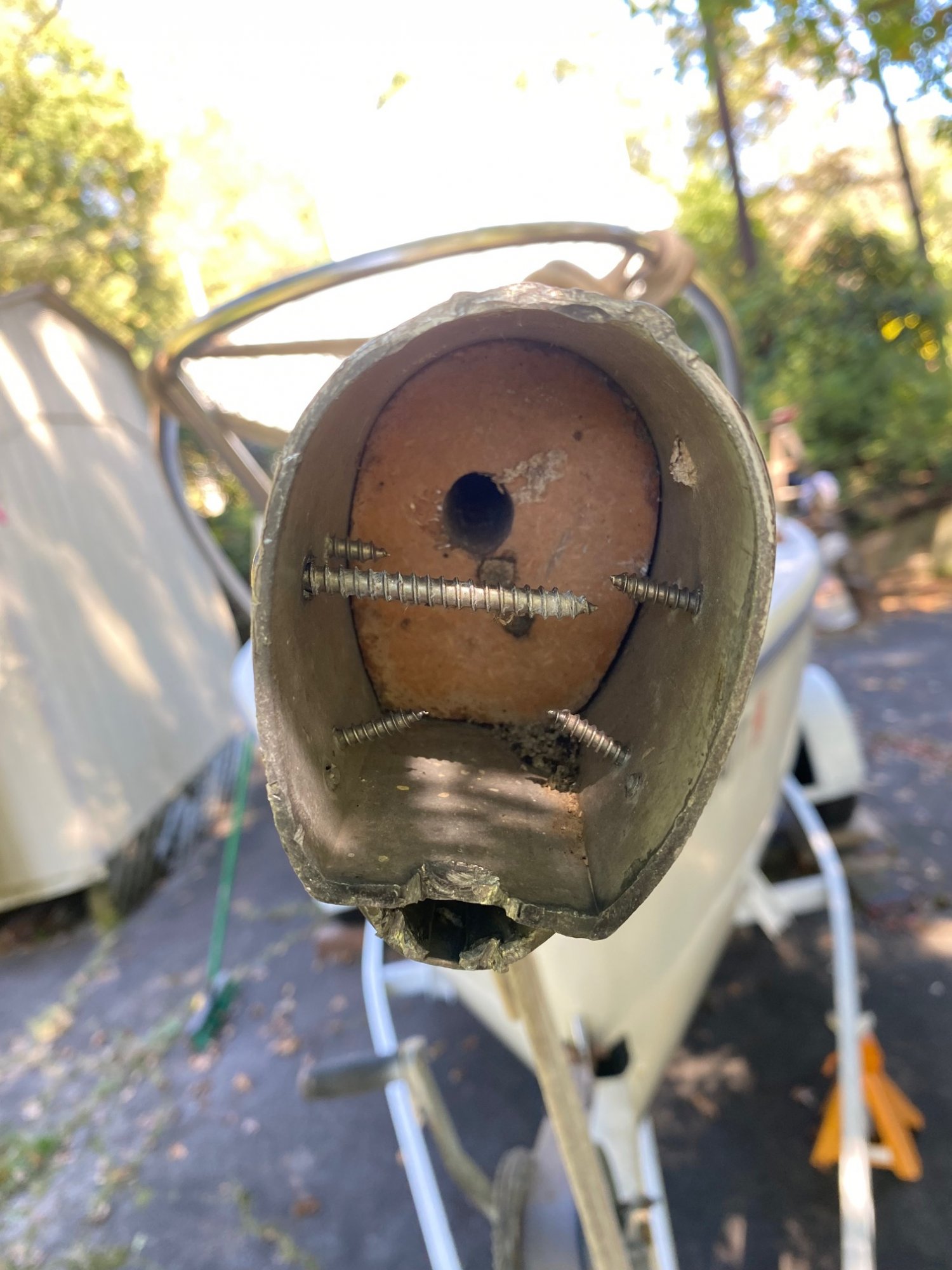 I cant seem to find anything even close online to this mast step with the metal cylinder and/or a mast what lacks the holes for a bolt to go through like most other masts... The Mast itself has me totally confused at what happened and even how it is now rigged up.