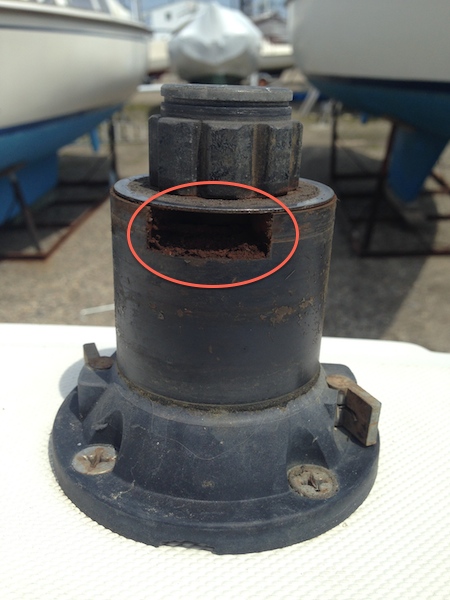 That opening was filled with rust when I pulled the drum off and only a very small piece of spring was left on one side so I can't squeeze it shut to pull out the shaft.