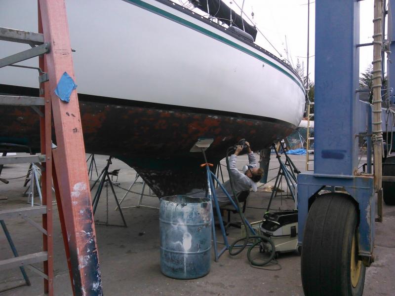 A picture is attached of me sanding/grinding away on the boat's bottom which also happens to be on the first day that I can claim SS benefits. (But I am still on the fence whether to wait a few more years before actually doing so.) Before I started sanding, the color of my boat's bottom was the same as the garbage bin and the boat hoist's frames also in the picture. Can't think or a better way to spend a birthday?! Except that evening, my wife and I enjoyed mango infused tequila tonics together ... albeit at a safe 15 miles away from the boat!