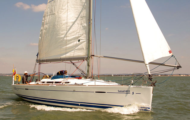 As our Sunsail F40 had a spinnaker pole, we set that up. We decided not to clip the outboard end to a genoa sheet as it hampers any emergency manoeuvre – you can’t tack with a pole on the sheet.