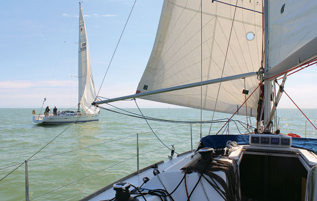 3 With the spinnaker hoisted and pole squared back, progress is quick and leisurely