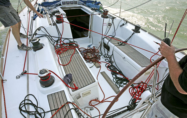 The spinnaker crew was the most hassled. The pole needed rigging, sheets and guys running, and there are lots of little details to get right. We dip-pole gybed but even end-to-end gybes require a spell forward as well as having someone to work the cockpit.