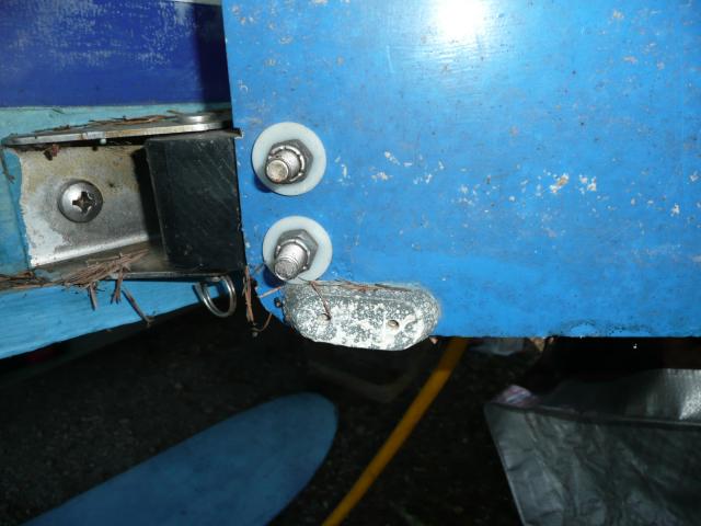 ...rudder plates are also an inch below the waterline (second battery, spare anchor on the aft rail and a 12 gallon fuel tank didn't help). I ground off the paint in one area of the plates and bolted a zinc to the plate. Problem solved, and I didn't have to move the beer.
