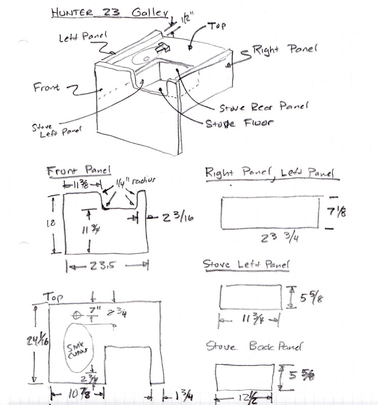 My H23 didn't have the sliding galley when I purchased it.. tossed out long ago by a previous owner. It did however have the original sink, faucet and stove packed away in a cardboard box (along with what was left of the electrical panel and other various wood bits and pieces from the cabin). I would like to build a galley (or should I say, the Admiral insists that I do before she gets on it for any length of time), so I'm looking for some pointers. I ran across this old thread that Kermit started back a few years ago, but it didn't seem to come to any kind of conclusion or provide much detail other than a rather good shot of the original galley: