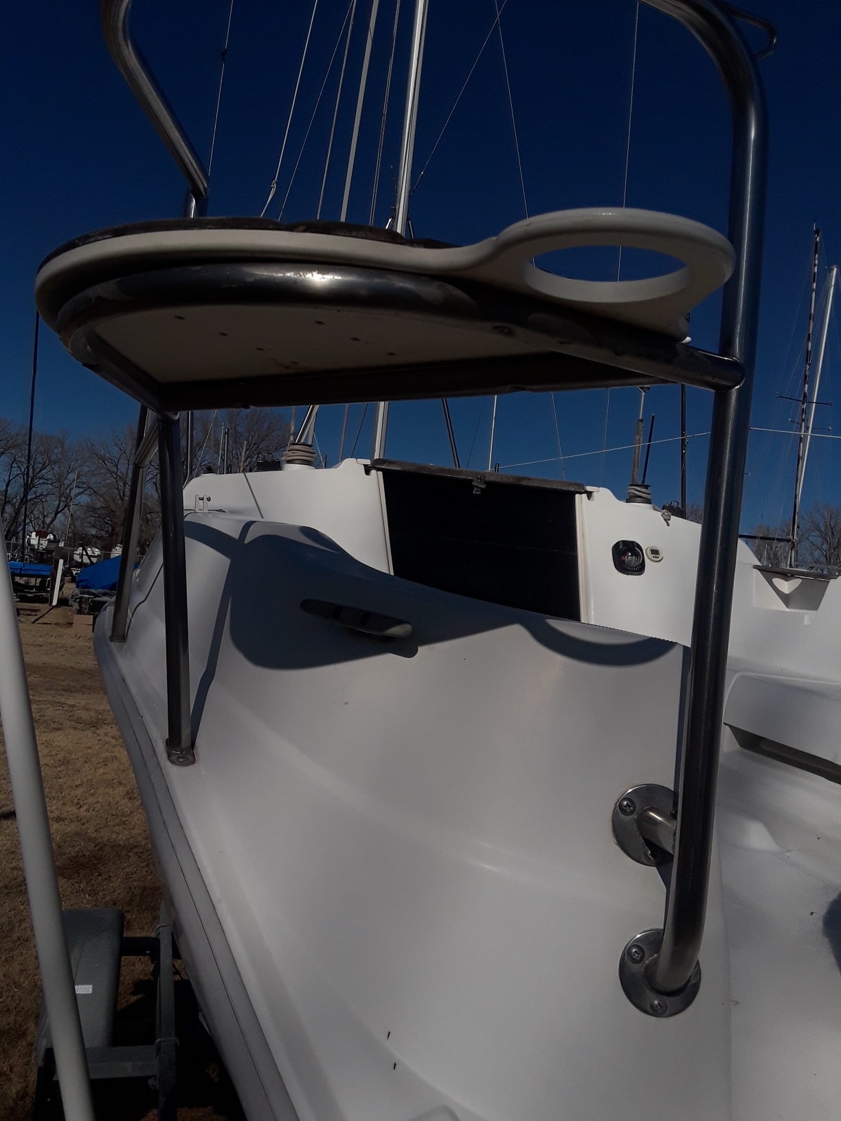 My Hunter 240 came with an open transom - no stern rails or stern seats. I can purchase the rails and seats from hunterowners.com but I don't know how to install them. I cannot get access to the inside hull wall to reinforce with back plates. Any suggestions? Thanks.