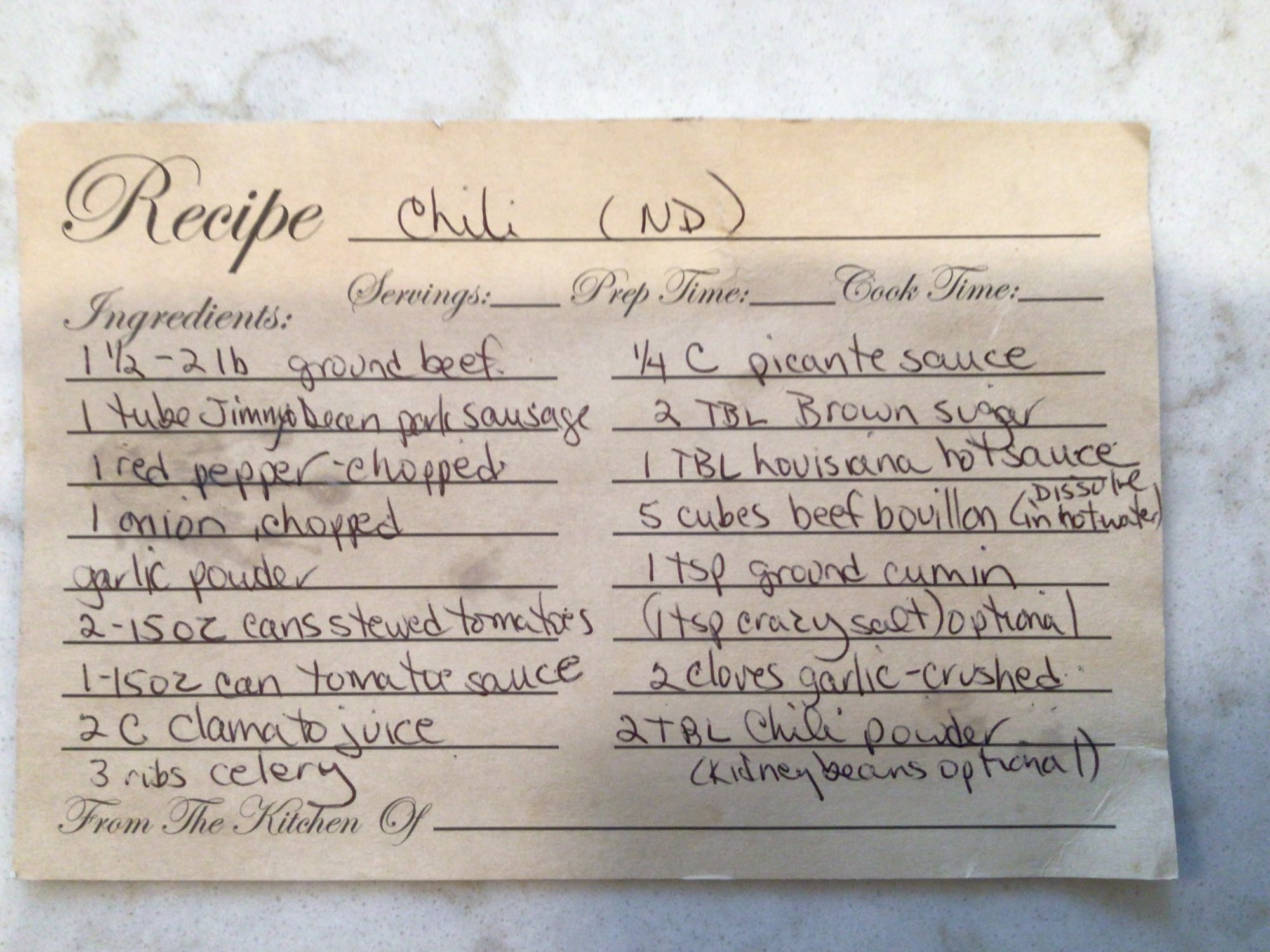 I am late to the party, but the next time you make chili, try this one…