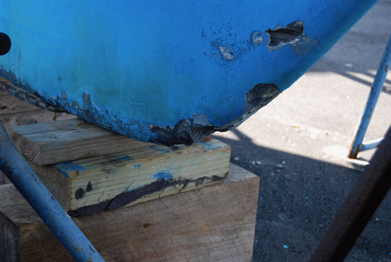 To give you some perspective the attached photos show keel damage from a hard grounding. This grounding caused hull delamination and cracked several floors timbers. (Note, I did not cause this damage. :)) Causing a divot as deep as this one and breaking off the end of the keel means the boat was traveling at speed and hit a rock pile, stopping suddenly.