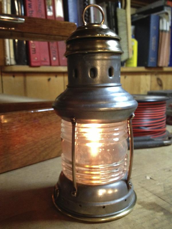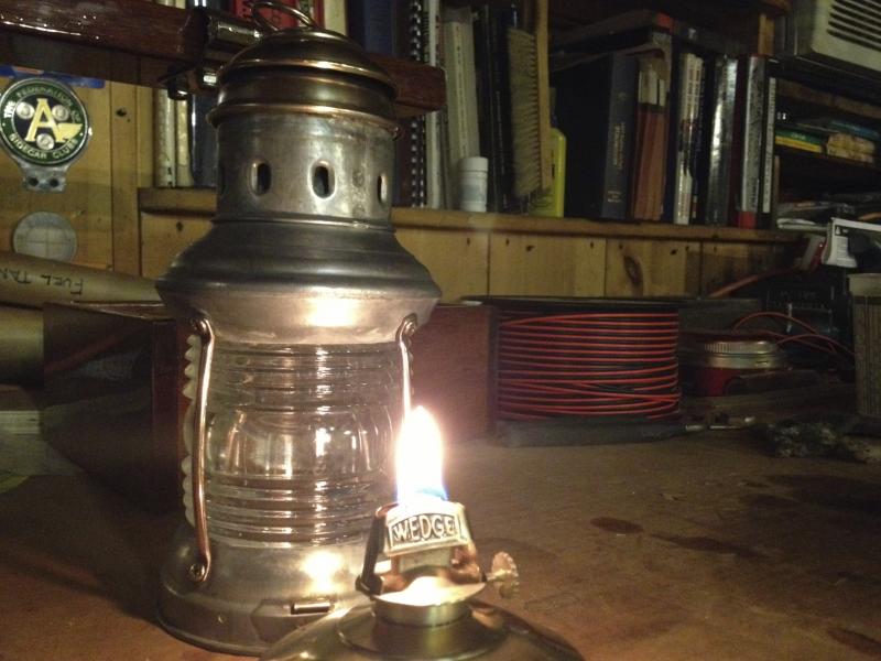 What! That old piece of junk....Or a more vintage solution. Given to me by a good friend. Cleaned up well. Lasts about 9-10 hours on one fill of lantern oil. It's specifically an anchor light and is wind and waterproof.