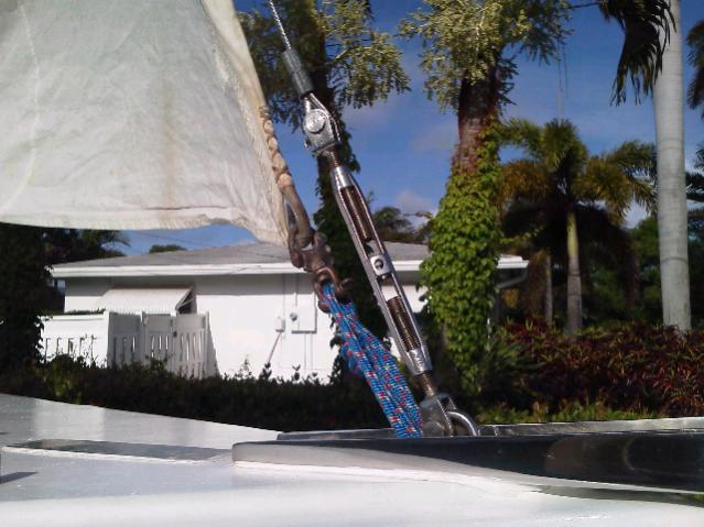 I finished up re-installing the running rigging hardware. This is the new standing rigging and turnbuckles. Also tried out the roller reefing set up on the main. May be ready for another sail! About time.