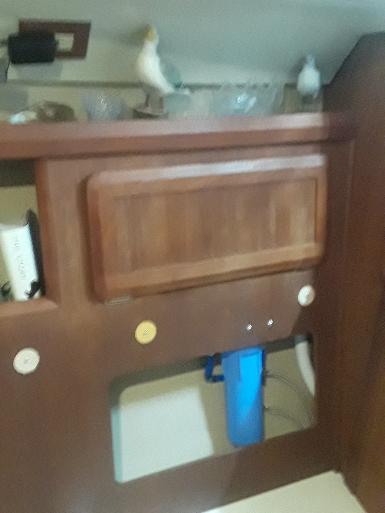 Instead we use 1 gallon plastic jugs from the grocery for drinking and yes showering on the dock with holes poked in the cap and a rope net to hold it up on the dock pole, though we do fill them up from hose for hand washing. The big tank and all the lines seem impossible to sanitize as well as a newish clear transparent plastic jug from the grocery. The front storage area would be good to free up, to store some of the cushions and life preservers and etc and some laundry bags of clothes.