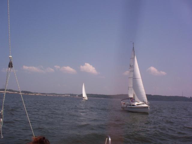 4) It is apparent that the blocks on deck the Jib sheets run through are not in the correct position (too far forward), we just end up pulling straight down on the clew.