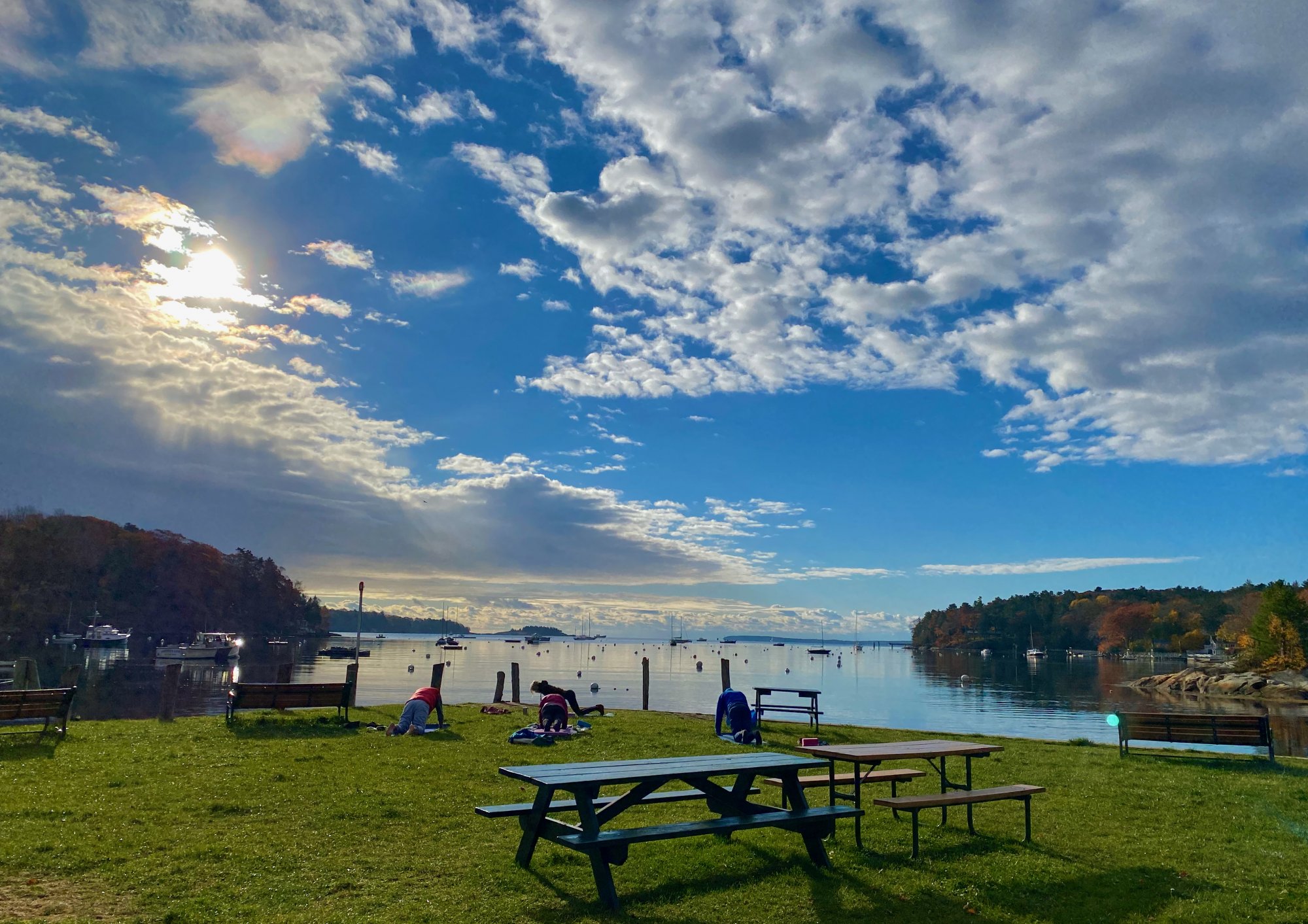 Downward dog?These non-boat owners were doing yoga on Rockport Harbor yesterday morning.