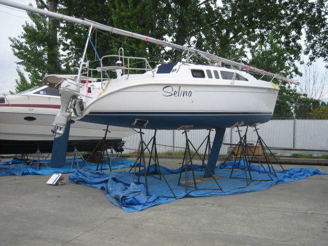 Yes they can. I put my H260 on jack stands a few years ago to re-do the bottom, and I'll be doing it again this winter to do some extra work on the centerboard. Originally I used three, two in the stern under the aft bed and one under the bow, but I noticed that after a week the hull above the aft jacks had temporarily deformed slightly inwards, so my placement of those wasn't the best. On the sides of the boat near the front of the cockpit you'll see labels that say Sling Here. I'm assuming those are reinforced so I'll be jacking in line with those this time.