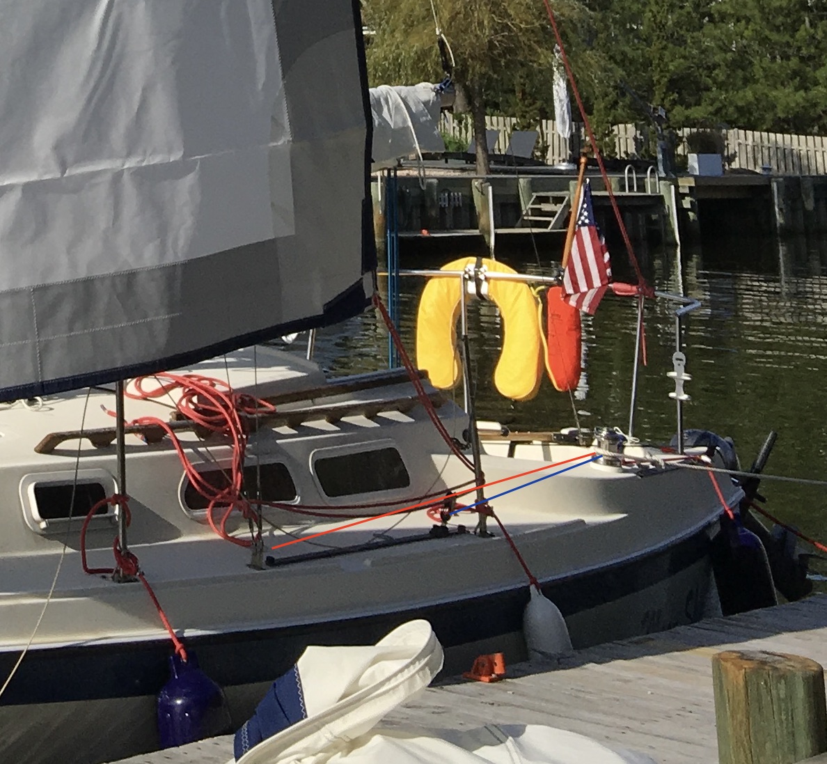 My jib sheet block is positioned such that the sheet rubs against the deck as shown. I do not think simply moving the block forward in the track will fix the issue. I'm thinking of replacing the block with something longer (not sure they exist), or putting a bullseye fairlead on the step to pull the sheet off the fiberglass corner. Has anyone else faced this issue? Any other possible solutions? i have seen stainless steel corners for this, but they are not curved to match the contour of the deck.