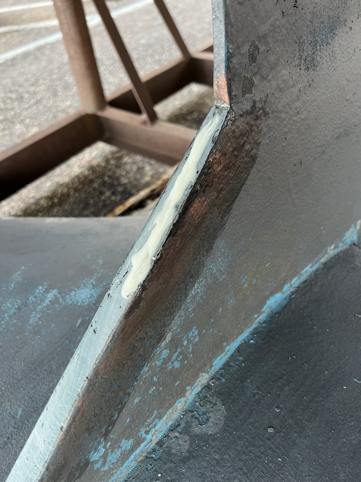Just a follow up on this. It was easy enough just to scrape away the paint in the spine of the fin and then wire brushed to reveal a long crack. I was surprised by how soft it felt. Seemed like I could wire brush away the whole keel with a little more time. Anyway, then I wire brushed some neat epoxy into the crack, followed by thickened epoxy. Now I just need to clean it up and paint.